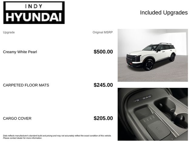 $3,014 off MSRP! Creamy White Pearl 2026 Hyundai Palisade XRTPalisade XRT is nicely equipped with Option Group 01, 14 Speakers, 3rd row seats: split-bench, 4-Wheel Disc Brakes, ABS brakes, Air Conditioning, Alloy wheels, AM/FM radio: SiriusXM, Apple CarPlay & Android Auto, Auto High-beam Headlights, Auto-dimming door mirrors, Auto-dimming Rear-View mirror, Auto-leveling suspension, Automatic temperature control, Brake assist, Cargo Cover, Cargo Tray, Carpeted Floor Mats, Compass, Delay-off headlights, Driver door bin, Driver vanity mirror, Dual front impact airbags, Dual front side impact airbags, Electronic Stability Control, Emergency communication system: Bluelink+, Exterior Parking Camera Rear, First Aid Kit, Four wheel independent suspension, Front anti-roll bar, Front Bucket Seats, Front Center Armrest, Front dual zone A/C, Front reading lights, Fully automatic headlights, H-Tex Leatherette Seat Trim, Heated & Ventilated Front Bucket Seats, Heated door mirrors, Heated front seats, Heated steering wheel, Illuminated entry, Knee airbag, Leather steering wheel, Low tire pressure warning, Navigation System, Occupant sensing airbag, Outside temperature display, Overhead airbag, Overhead console, Panic alarm, Passenger door bin, Passenger vanity mirror, Power door mirrors, Power driver seat, Power Liftgate, Power moonroof, Power passenger seat, Power steering, Power windows, Radio data system, Radio: Infotainment Navigation System, Rear air conditioning, Rear anti-roll bar, Rear audio controls, Rear reading lights, Rear side impact airbag, Rear window defroster, Rear window wiper, Reclining 3rd row seat, Remote keyless entry, Security system, Speed control, Split folding rear seat, Spoiler, Steering wheel mounted audio controls, Tachometer, Telescoping steering wheel, Tilt steering wheel, Traction control, Trip computer, Variably intermittent wipers, Ventilated front seats, Voltmeter, and Wheels: 18" x 7.5J Dark Alloy. AWD 8-Speed Automatic V6Vehicle description, options, price and trim may not be accurate due to automated processes. Bob Rohrman's Indy Hyundai proudly selling and servicing New, Used, Pre-owned and certified vehicles in and around Indianapolis Indiana, and surrounding central Indiana. We stock all makes and models of used SUV's, cars and trucks. We even offer budget vehicles under $5k. Hyundai, Kia, Honda, GM, Chrysler, Ford, Toyota, Chevrolet, Buick, GMC, Dodge, Ram, Acura, Subaru, Lexus. Price includes: $1250 - Hyundai HMF Dealer Choice : $1250 discount and 5.99% APR for 24 months. $44.32 per $1000 financed. Available to well qualified buyers who finance through Hyundai Motor Finance. H704. Exp. 11/03/2025